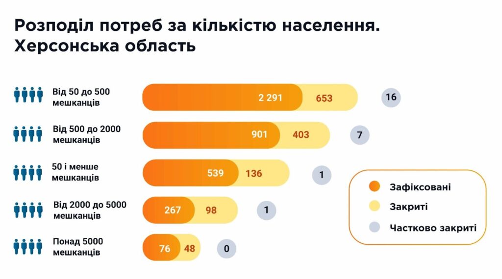 Розподіл і структура потреб у громадах Херсонщини за чисельністю населення