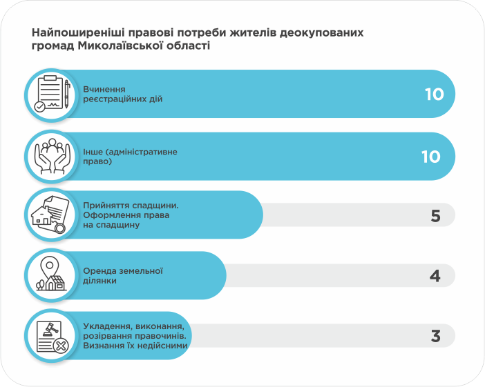 НАЙПОШИРЕНІШІ ПРАВОВІ ПОТРЕБИ ЖИТЕЛІВ ДЕОКУПОВАНИХ ГРОМАД МИКОЛАЇВСЬКОЇ ОБЛАСТІ