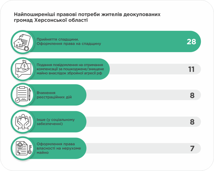 НАЙПОШИРЕНІШІ ПРАВОВІ ПОТРЕБИ ЖИТЕЛІВ ДЕОКУПОВАНИХ ГРОМАД ХЕРСОНСЬКОЇ ОБЛАСТІ