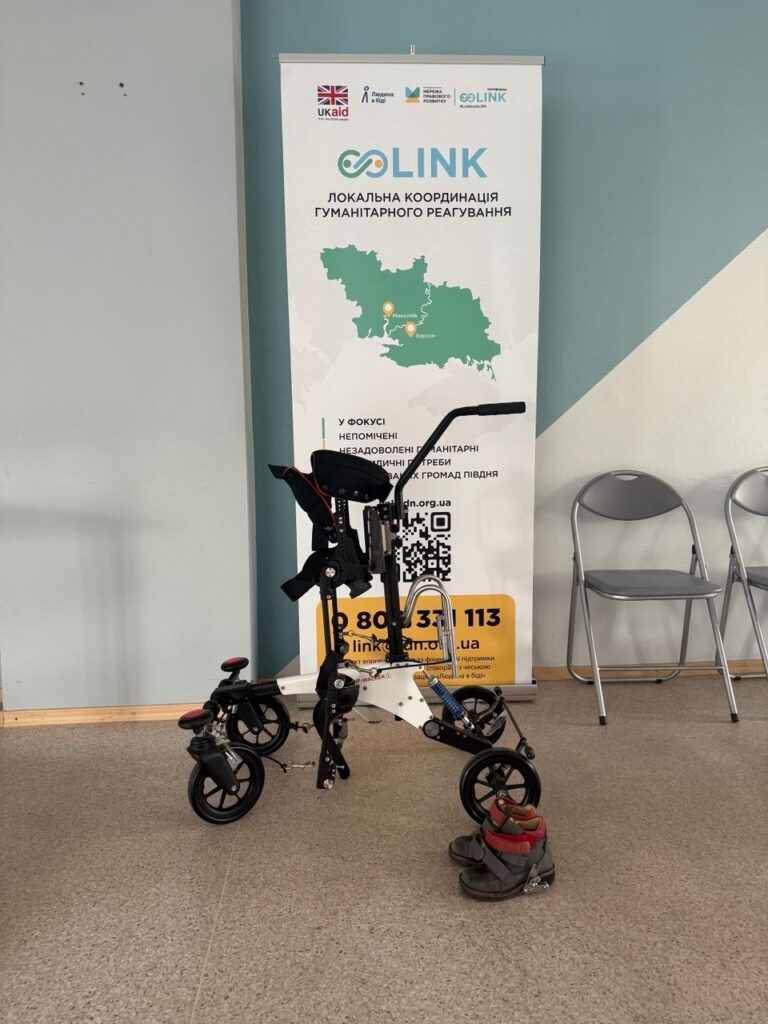 The collaboration between two organizations via the Link platform has provided a child with a disability from a de-occupied community in the Kherson region with a necessary mobility device. The Link platform is implemented by the Legal Development Network in cooperation with the Czech humanitarian organization People in Need, with funding from the UK Government.