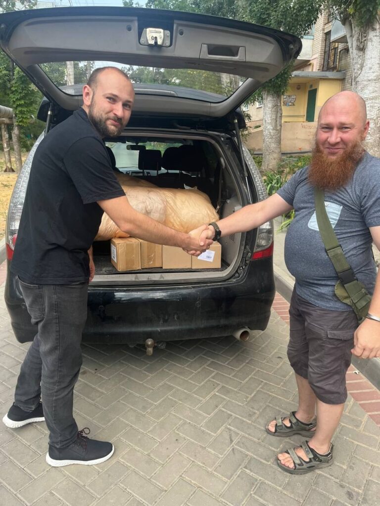 From right to left: Oleksandr Honchar, coordinator of the Link humanitarian response team in Kherson Oblast; Maksym Reveha, head of the Kherson branch of the international charitable foundation “Patriot UA”