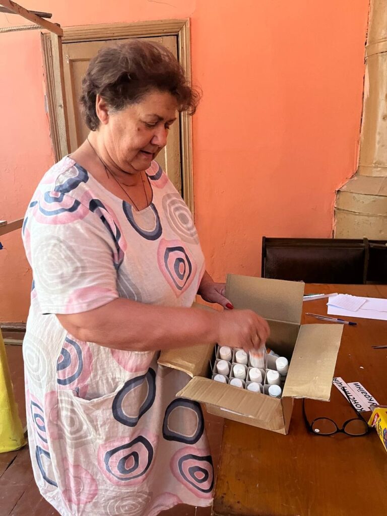 “Humanitarian organizations only reach us in dry weather. If it rains, we gather with the guys in cars and drive ourselves to neighboring villages to pick up aid. The village feels somewhat ‘offended’ because neighboring villages: Posad-Pokrovske, Kyselivka, Zelenyi Hai receive more diverse aid, while they don’t want to come to us because there’s no road,” says Maryna Nevhozha, director of the municipal institution “Rural Club of Krutyi Yar Village,” who is currently acting as village head.